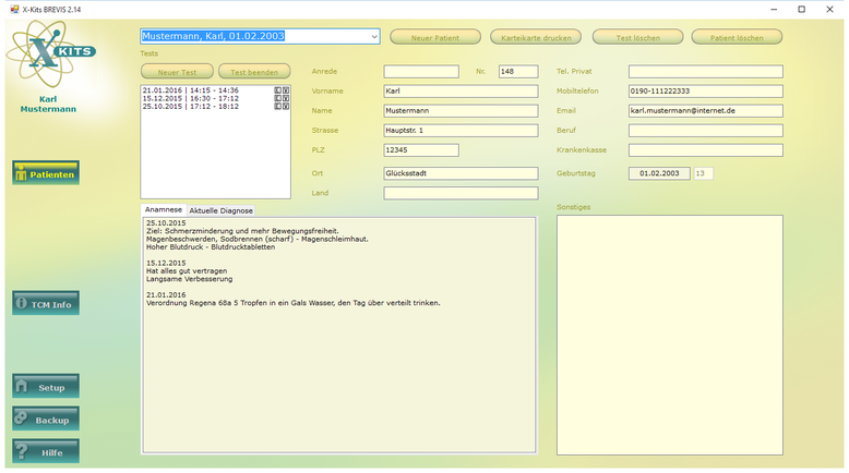 - Informationsfelder z.B. für Anamnese und Verlauf